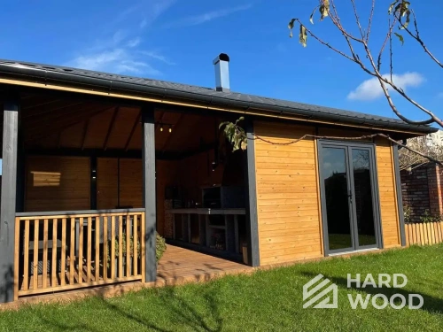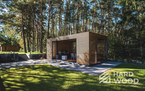 Лофт вырос из индустриальной эстетики: прямые линии, понятный каркас, фактура материалов на первом плане. В беседке это выражается в открытых балках, строгой геометрии, крупном остеклении и функциональности каждой детали. Никакой визуальной «тяжести» — только то, что работает на комфорт и стиль.