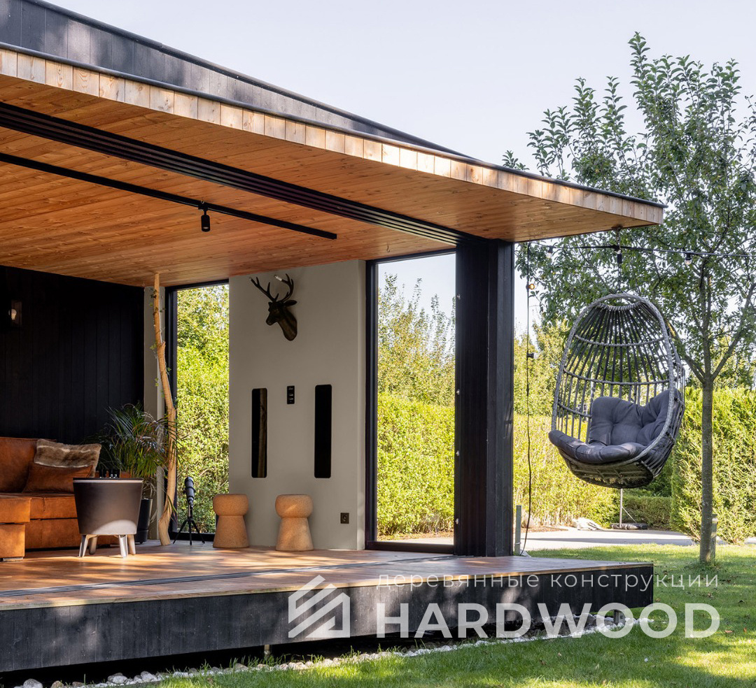 Определитесь с конструкцией и материалами. Для силуэта лофт характерны односкатные или плоские кровли, контраст дерева и металла, минималистичная обрешётка. Если важен всесезонный комфорт — подумайте о частичном остеклении, ветрозащите и подсветке; для летнего формата достаточно открытого павильона с навесом.